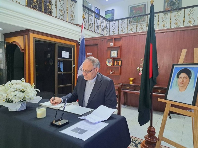 امضای دفتر یابود تسلیت در گذشت خانم بیگم خالده ضیاء نخست وزیر سابق بنگلادش در سفارت ابن کش...