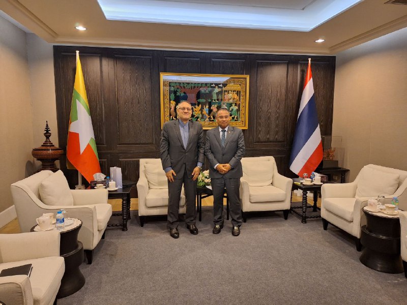 H.E Mr. Nassereddin HEIDARI, Ambassador of the Islamic Republic of Iran to Thailand, met with H.E Mr. Zaw Zaw SOE, Ambassador of Myanmar, while both discussed the latest developments in bilateral and multilateral relations between the Islamic Republic of Iran and the Republic of the Union of Myanmar.