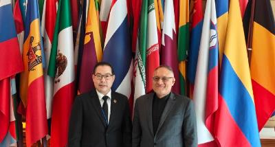جناب آقای ناصرالدین حیدری، سفیر جمهوری اسلامی ایران در تایلند، روز جمعه 21 آذر 1404 با آقای «امین مایوسو» معاون وزیر کشاورزی و تعاون تایلند، دیدار و گفتگو کرد. طی این ملاقات، نامبردگان در خصوص نهایی کردن پیش نویس اسناد همکاری دو کشور در زمینه بهداشت دام و قرنطینه گیاهی و همچنین تبادل دانش در حوزه پرورش شیلات و گسترش تجارت محصولات کشاورزی به ویژه غذای حلال، بحث و تبادل نظر کردند. سفیر کشورمان از تمایل حوزه شیلات ایران جهت بهره مندی از تخصص کارشناسان شیلات تایلند در زمینه مقابله با همه گیری برخی بیماری‌ها در مزارع پرورش میگو در ایران و امکان سرمایه گذاری کارآفرینان تایلندی در صنایع دام و شیلات ایران خبر داد.