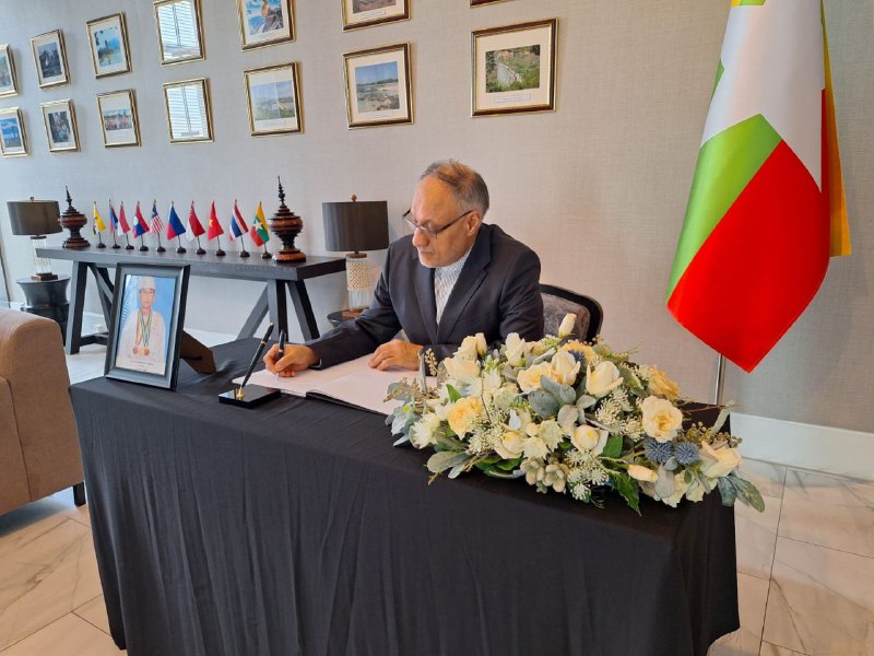 เอกอัครราชทูตสาธารณรัฐอิสลามอิหร่านลงนามในสมุดไว้อาลัยแด่อดีตประธานาธิบดีแห่งสาธารณรัฐแห่งสหภาพเมียนมา